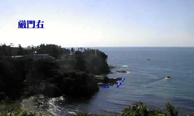 | 駐車場から徒歩10分 写真では見にくいが、一番先端より潮に乗せて流す。浮き下 駐車場が少なく、探すのに 2ヒロ半〜3ヒロ。 苦労する。厳門駐車場から歩くと良い。 |