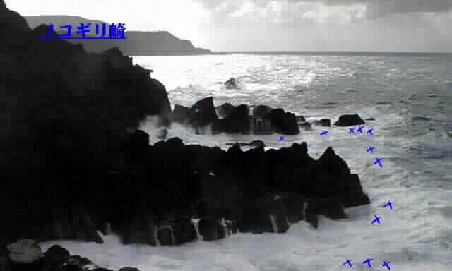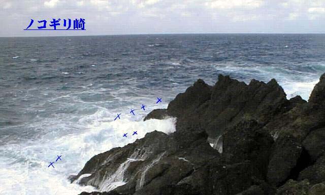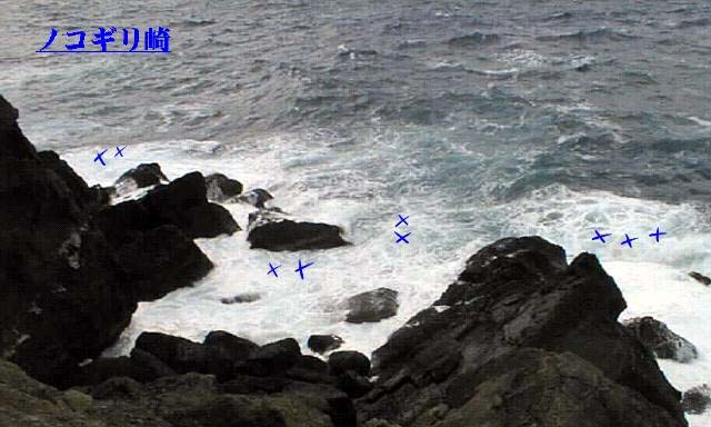 | 皆月より徒歩30分 この当たりは全てが好ポイントで払い出しの潮を見つければ、そこから 距離皆月から1、5km 浮きを流し当たりを待てば良い。浮き下は2ヒロ半〜3ヒロ位 撒き餌オキアミ 刺し餌オキアミ、ボケ、足場が悪いので要注意。 |