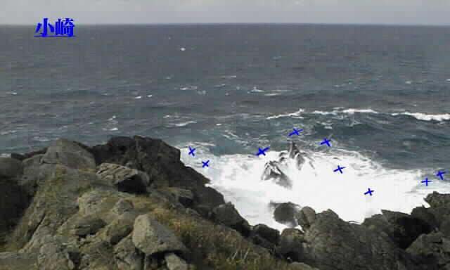 | 小崎の左側です。写真の様な波の強い日は、浮きが左の岸の方へ流されるのでかなり釣り辛い 場所です。適度なサラシの時には好ポイントとなります。 |